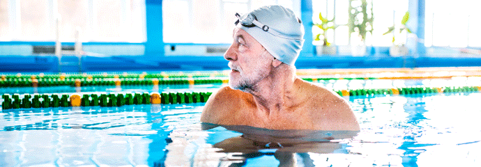 Considerada uma das atividades físicas mais seguras, devido ao baixo risco de lesão, a natação é um dos esportes mais completos que existem. Trabalha com todos os músculos do corpo, aumentando a capacidade de respiração, circulação e coordenação. Além da natação, a hidroginástica também é uma excelente atividade aeróbica, devido ao baixo impacto de lesões no corpo, sobretudo para idosos que sofrem de dores no joelho e nas articulações.